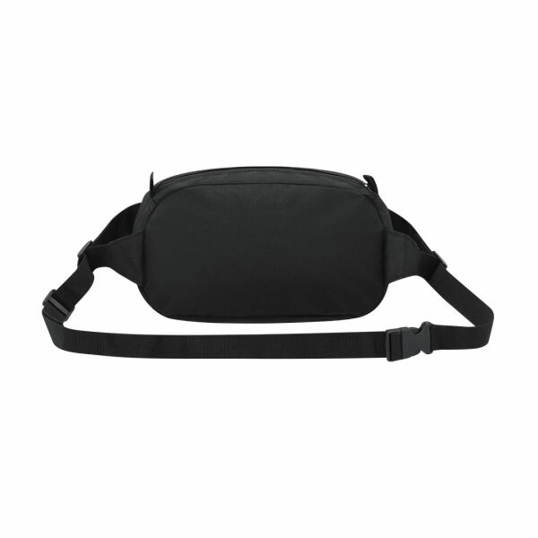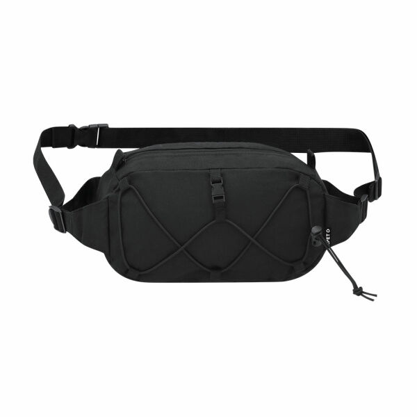 Heuptas van 600D RPET polyester. Met hoofdvak met onzichtbare zwarte rits en zwarte metalen ritstrekker, en verstelbare riem met gesp. Voorzijde met verstelbaar elastisch koord. Inclusief kenmerkend RPET-label.