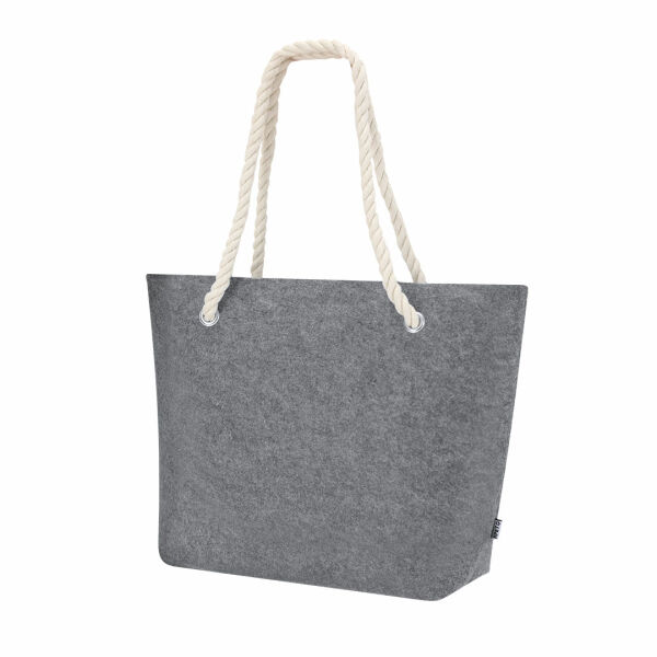 Tas gemaakt van gerecycled vilt. Met katoenen trekkoorden versterkt met ringen en een bodem. Belastbaarheid tot 6kg. RPET-label op de buitenkant.Het RPET-materiaal wordt gemaakt van gerecycled plastic, om zo de hergebruik van plastic afval te bevorderen en te helpen bij de duurzaamheid van de planeet.