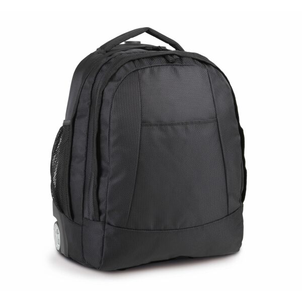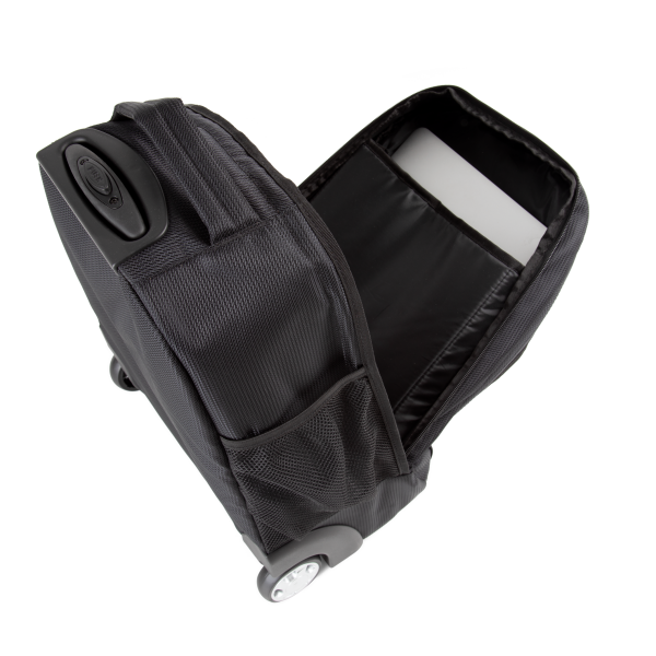 Speciale business trolleykoffer met de juiste handbagageafmetingen. Trolleysysteem in elegant gebogen aluminium. Voorvak dat dienst doet als aktetas. Gevoerd laptopvak. Groot kledingvak. 100 % personaliseerbaar voorvak.