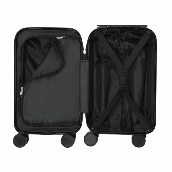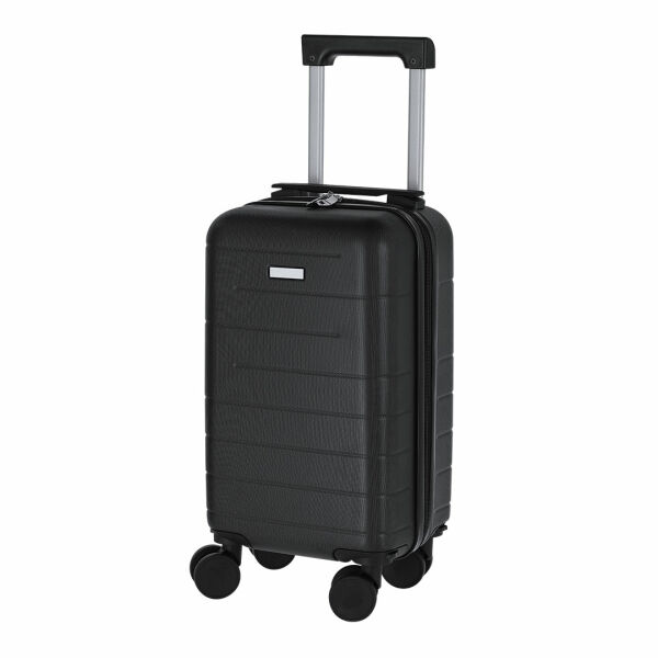 Praktische trolley met 4 afneembare draaiwielen, in stijve ABS. Dubbele ritssluiting met de trekker. Interieur met compartimenten en diverse items. Dankzij het compacte formaat en het verwijderen van de wielen is het meenemen van een trolley als handbagage geen probleem. Inclusief tas om de wielen op te bergen.
