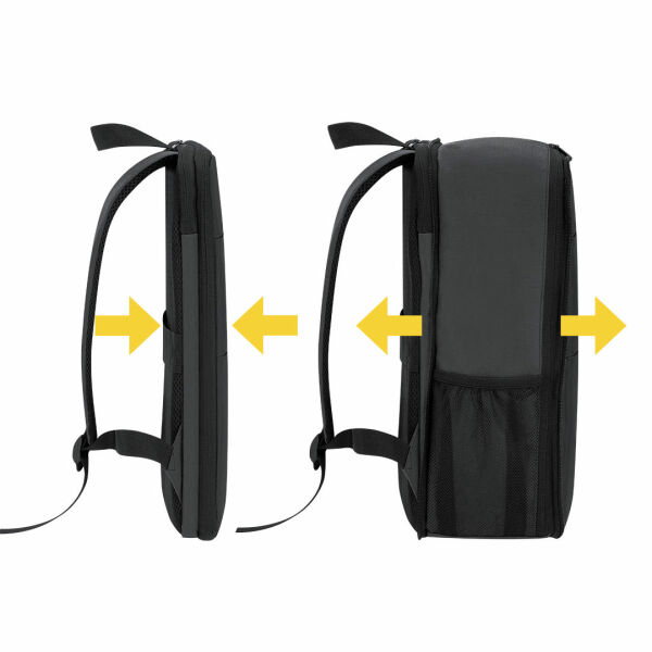 Uitschuifbare rugzak gemaakt van duurzame PU/600D polyester. Uitgerust met een dubbele ritssluiting, met de mogelijkheid om de capaciteit te vergroten. Met twee voorste compartimenten en een gevoerd binnenvak voor laptops tot 15 inch. Zijzak. Comfortabel gevoerd, ademend en verstelbaar op de schouderbanden. Bevat tape om het vast te maken aan de trolley en koffers.