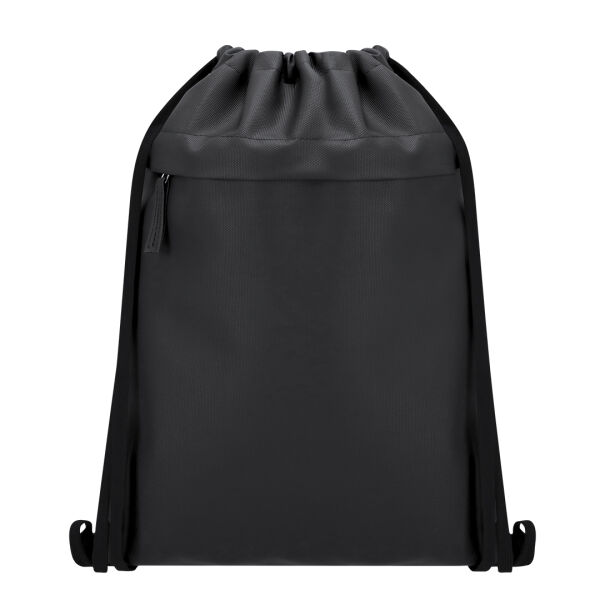 Trekkoordrugzak gemaakt van zacht PU gecombineerd met stevig 600D polyester. Voorzien van een functioneel voorvak met ritssluiting en bijpassende PU-trekker.