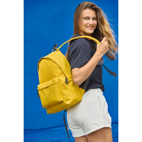 Rugzak van 600D polyester, ritszak aan de voorkant, gewatteerde achterkant, verstelbare ergonomische banden.