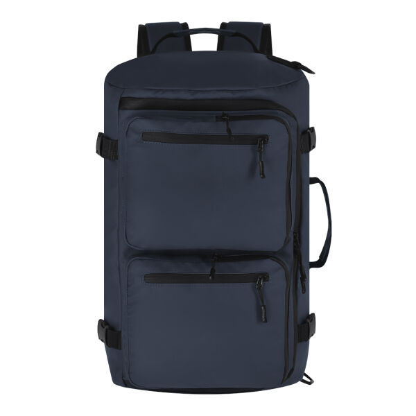 Rugzaktas gemaakt van PU. Het heeft een stedelijk ontwerp met een centraal vak met ritssluiting en een dubbele trekker. Binnenzak en drie vakken aan de voorkant, en een zak onderin voor opslag. De schouderbanden en rug zijn gevoerd en verstelbaar voor comfort. Er zitten banden aan de zijkanten in zodat je de dikte kunt aanpassen en het compact kunt maken. Hij biedt drie vervoersmiddelen: als rugzak, dankzij de gevoerde schouderbanden en met een compartiment om ze op te bergen; als reistas, dankzij het gevoerde draaghandvat; en als schoudertas dankzij de verstelbare lange band.