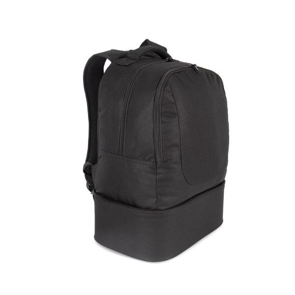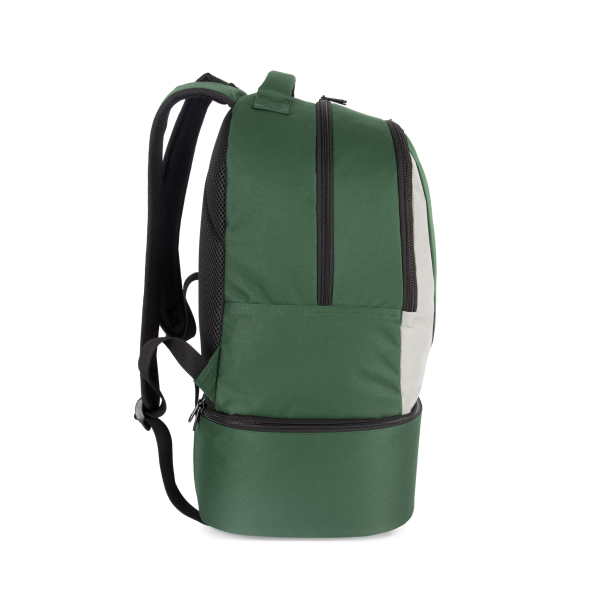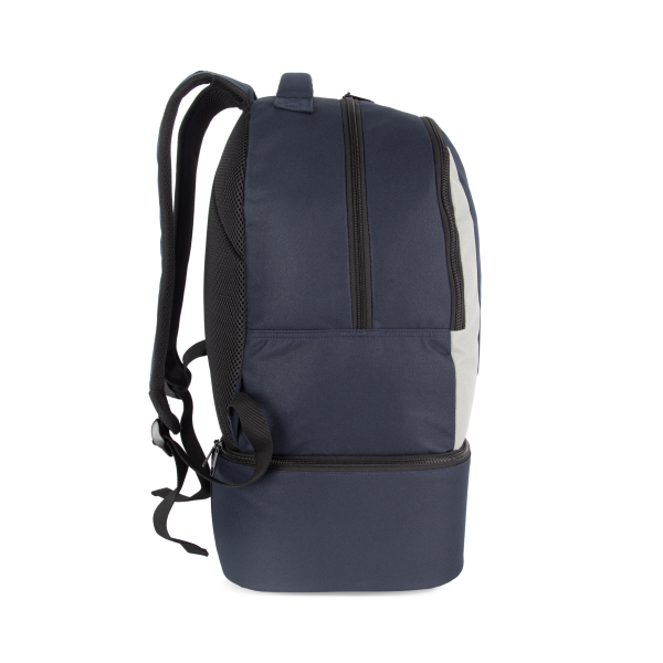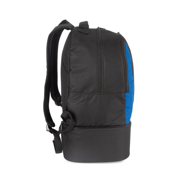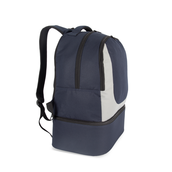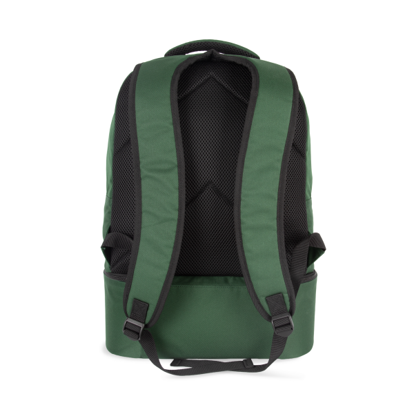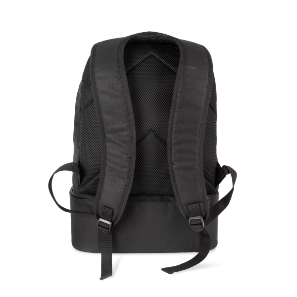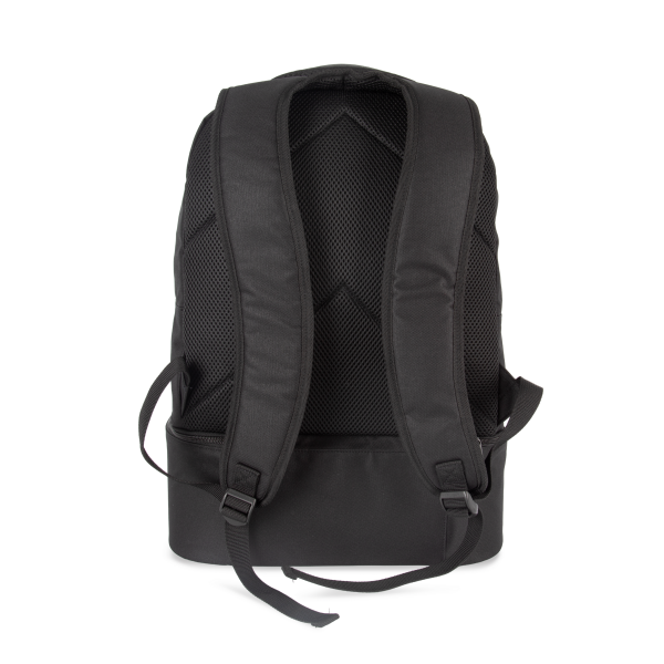 100% polyester. Tweekleurig voorpaneel. Groot hoofdvak met dubbele ritssluiting. Diepe voorste zak met dubbele rits. Ergonomische, gewatteerde schouderbanden met versterkte naden voor meer stevigheid. Gewatteerde achterkant met ademende mesh. Gewatteerde en ademende handgreep met versterkte naden bovenaan. Stevige bodem. Het stevige paneel in de voering kan worden verwijderd via een ritssluiting. Zo kan de tas eenvoudig worden gepersonaliseerd en kan de tas in de machine worden gewassen.