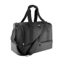 Tas gemaakt van RPET 600D polyester. Beschikt over drie functionele compartimenten: een hoofdcompartiment met rits, een zijvak met rits en een basisvak met dubbele ritssluiting, ideaal voor schoeisel. Inclusief verstelbare schouderband, handgrepen versterkt met metalen studs en elegante zilveren details. Het RPET-materiaal is gemaakt van gerecycled plastic, om hergebruik van plastic afval te bevorderen en de duurzaamheid van de planeet te ondersteunen.