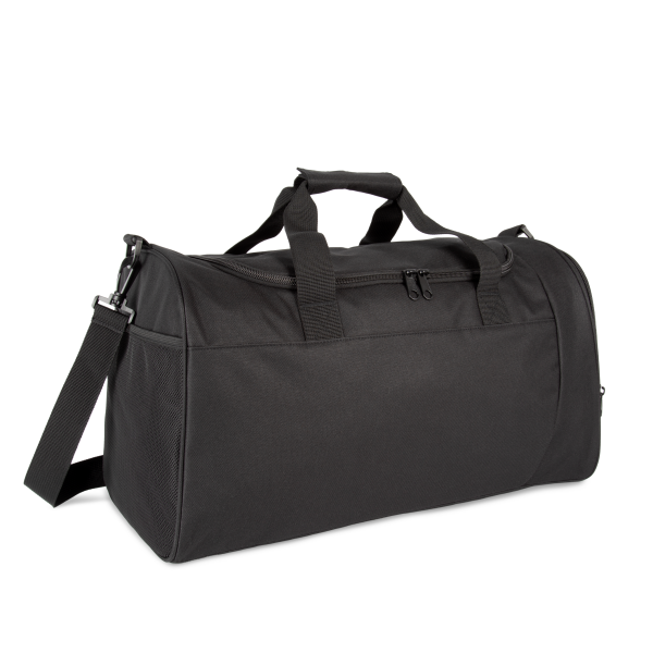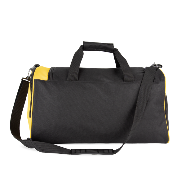 100% polyester. Zijpaneel met contrasterende ritssluiting en binnenvak voor schoenen. Groot hoofdvak met volledige opening via de bovenkant en dubbele ritssluiting. Handgrepen met gewatteerde versteviging voor meer draagcomfort. Afneembare en verstelbare schouderriem met versteviging aan de schouder, die makkelijk is op te bergen in de zak opzij. Eenvoudige personalisatie op de voorpanelen, de zijpanelen en de klep bovenaan. Verkrijgbaar in de maten M en L, voor junior en senior teams.